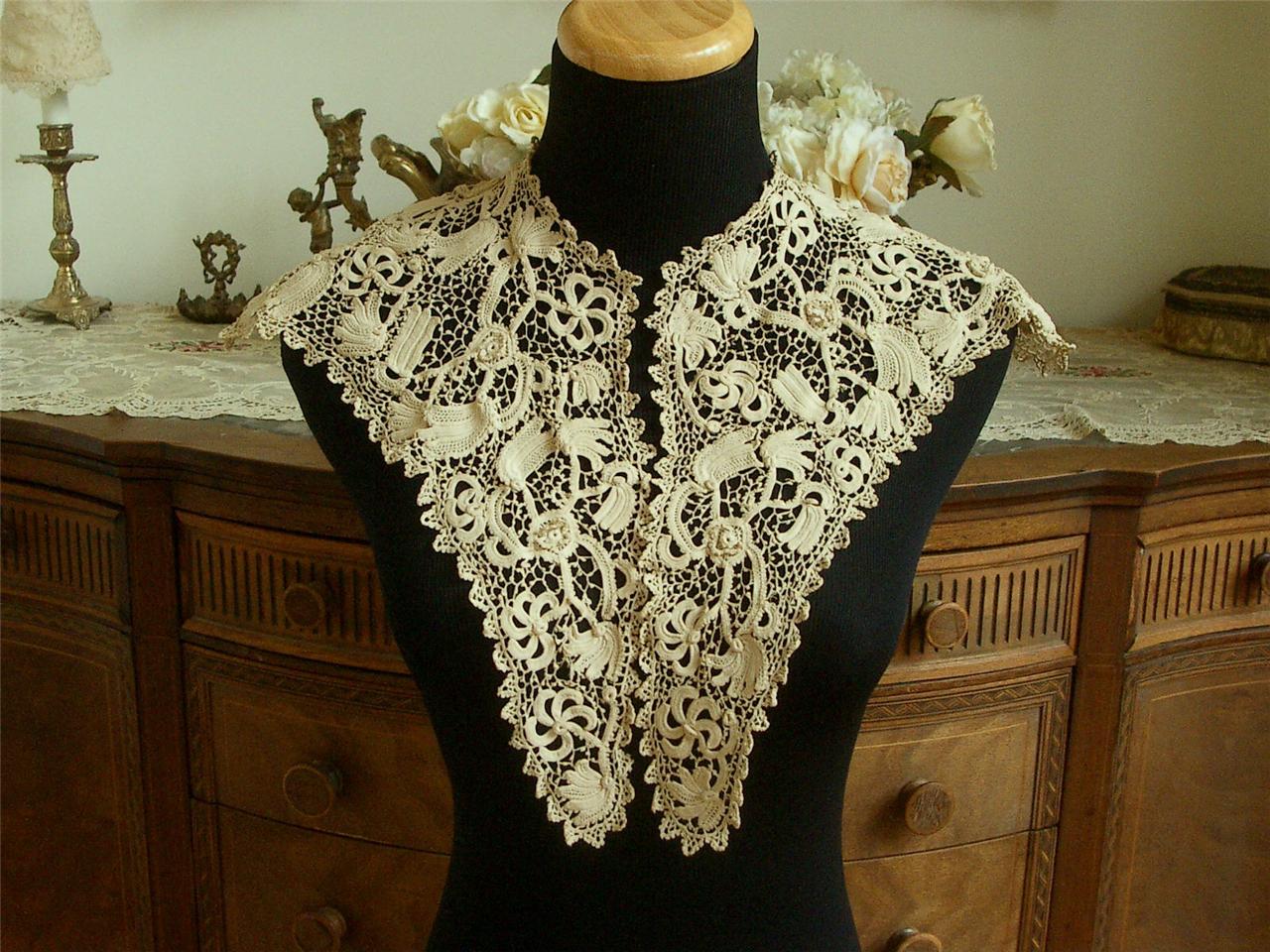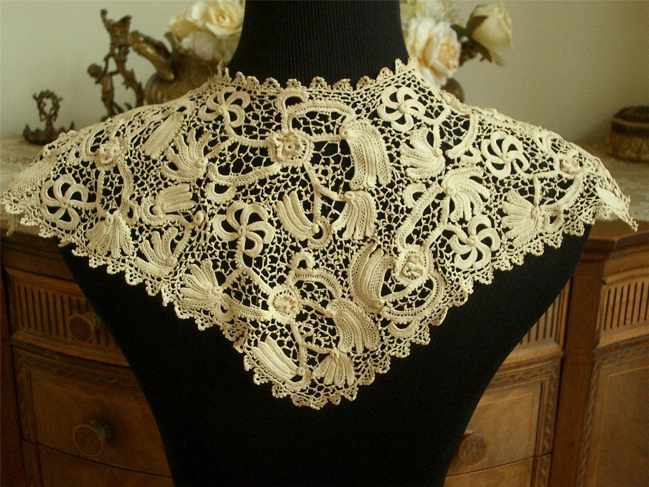 http://tinyurl.com/cg23mxo Antique Irish Lace Collar Hand Made Fancy Ornate