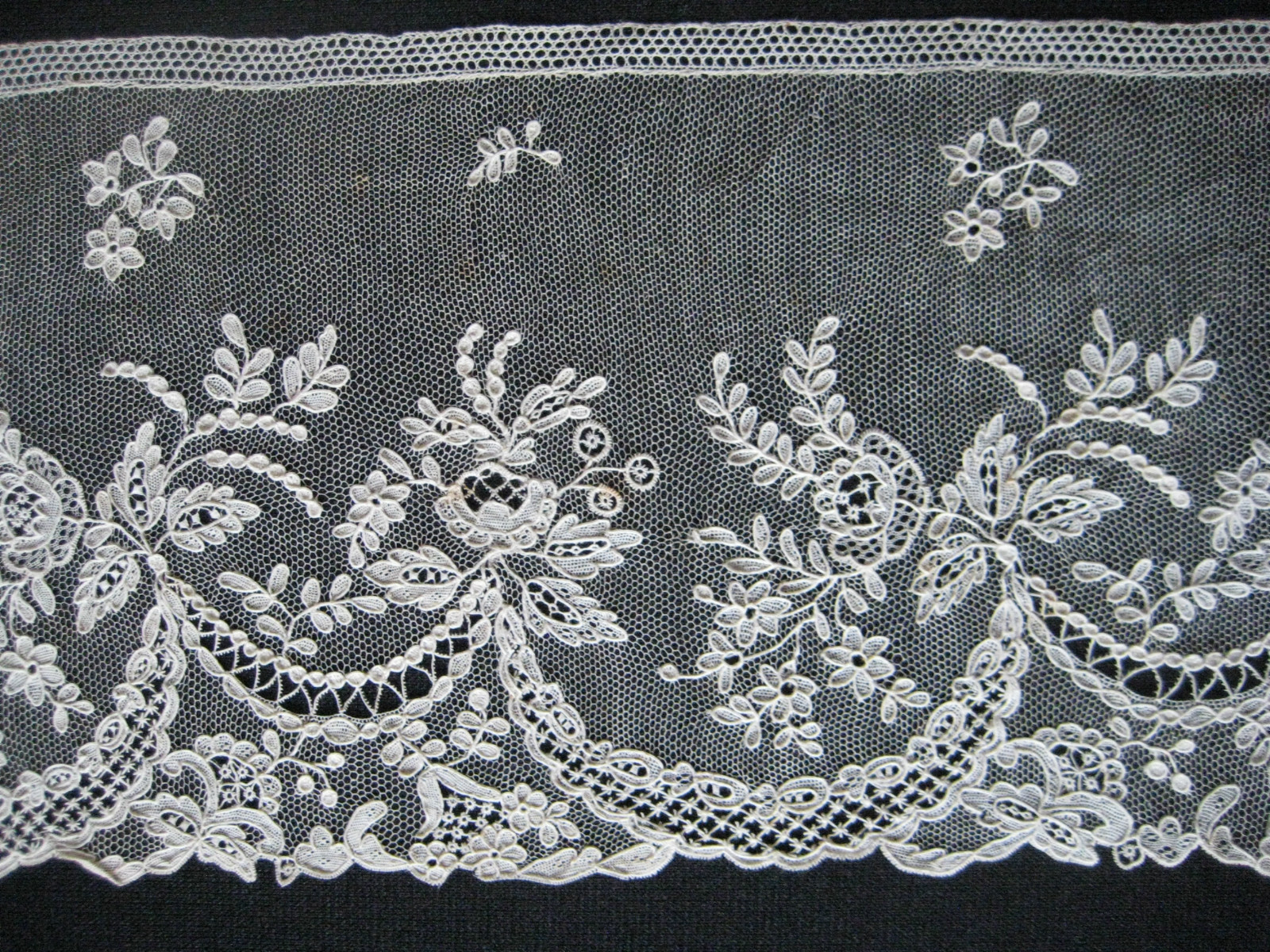 http://tinyurl.com/br7como 18thc Antique Valenciennes – BINCHE Bobbin Lace – 69 x 2inches (175x5cm)