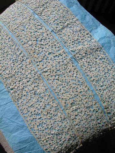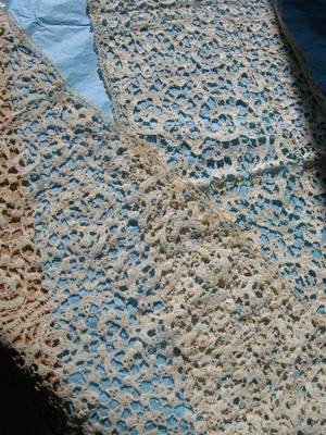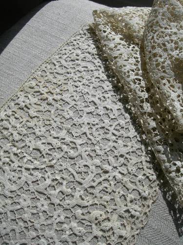 Comments: Another Milanese bobbinlace, quite similar to that described above. It’s in 3 pieces with a few storage marks according to the seller. Overall good condition.