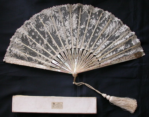 http://tinyurl.com/oux7eab BRUSSELS POINT DE GAZE LACE FAN + BOX. CORONET, CROWN. RUSSIAN MAKER, ALEXANDRE.
