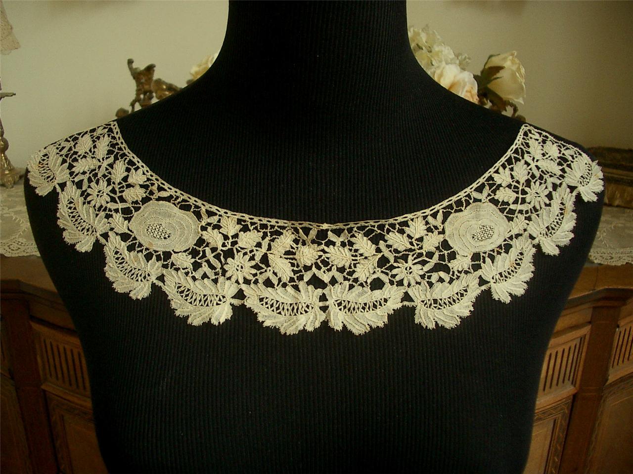 http://tinyurl.com/lg3zcax Antique Large Lace Collar Hand made Brussels Duchesse Point de gaze 76″ edge