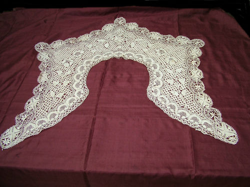 Comments: A bertha of Carrickmacross applique. Typical looped picots on the border, and note the shamrocks n the design. Looks in very good condition from the photos.