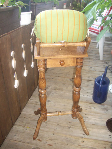 Comments: One of the nice things about collecting German Klöppelstands is their variety, and the opportunity for woodworkers to show off their skills. This one is apparently fairly recent, made to order in a woodturner’s shop. Beautifully worked and finished, looks in very good condition.