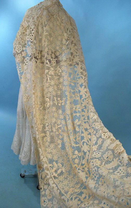 http://tinyurl.com/l7lkzru 1900 GORGEOUS HAND IRISH CROCHET LONG PANEL SHAWL/VEIL FILIGREE DESIGNS