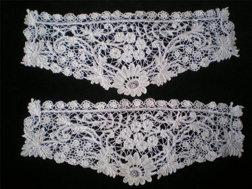 Comments: Two Cuffs of Duchesse, no Point de Gaze inserts, but there are some decorative ‘mode fillings in flower centers. A typical Duchesse design, with a good naturalistic asymmetric flower spray. Basically very good condition, I don’t see any problems in the photos.