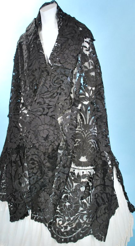 http://tinyurl.com/ltvpplg 19THC EXTRAVAGANTLY LARGE BLACK SPANISH BLONDE LACE SHAWL