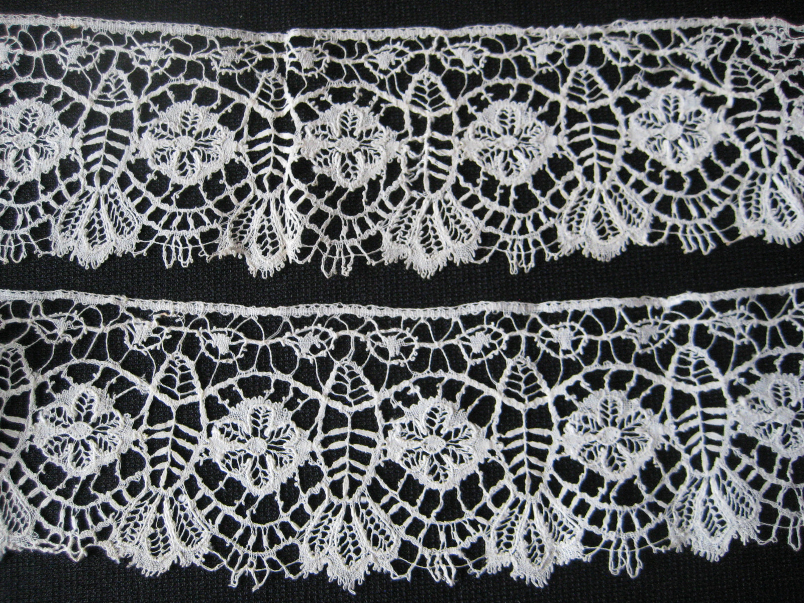 Comments: This looks like a narrow border of Beds. I’ve seen thelittle round motif before, in better quality Beds laces. It does have a generally washed out wrinkled appearance, so I’ll call the condition basically good.