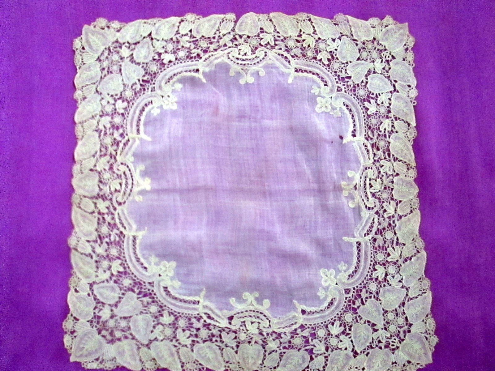 http://tinyurl.com/nx7rpd9 Exquisite Brussels Lace Antique Wedding Bridal Handkerchief Delicate 12″ Lt.Ecru