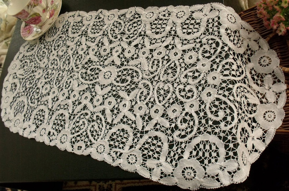 http://tinyurl.com/mlcm5d9 Handmade Antique Irish Youghal Needlelace 114″ L X 4 1/4″ Wide Tiny Repair?
