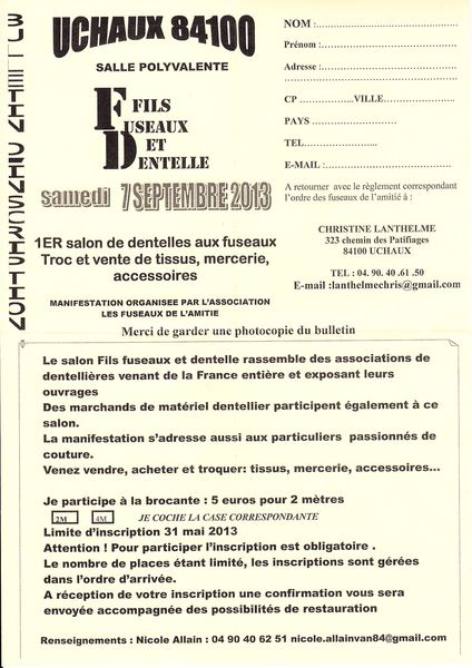 1er Salon de Dentelles aux Fuseau, Uchaux (Vaucluse department in the Provence-Alpes-Côte d’Azur region)