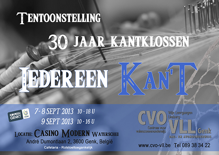 Sponsors: Centrum voor Volwassenenonderwijs, Genk, Belgium. This is in celebration of 30 years of lacemaking classes at the center.