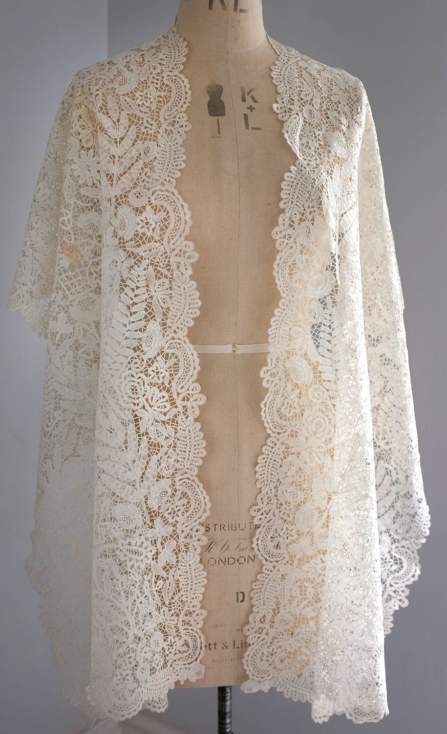 http://tinyurl.com/lj8gcyb Country House antique Victorian cream Carrickmacross needlelace lace shawl