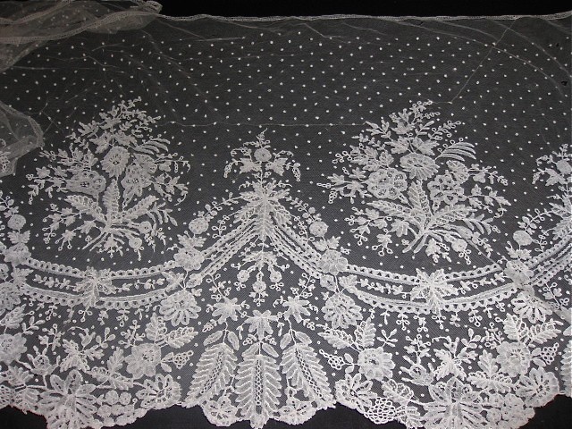 Comments: A lappet scarf of Chantilly. With a little bit of shading at the ends, but I don’t think it’s an ombre product. Probably Belgian.