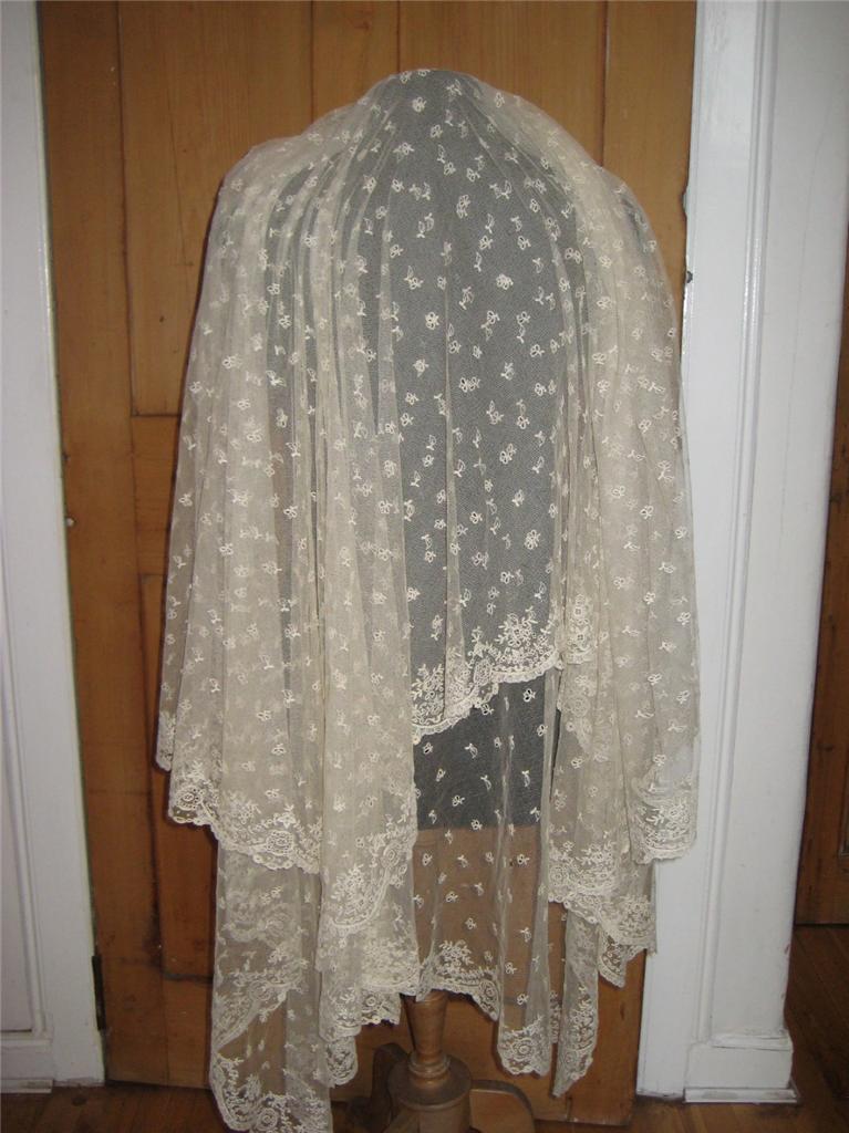 http://tinyurl.com/kf6bqes ANTIQUE LACE-C. 1800’s,LIMERICK LACE WEDDING VEIL,SHAWL