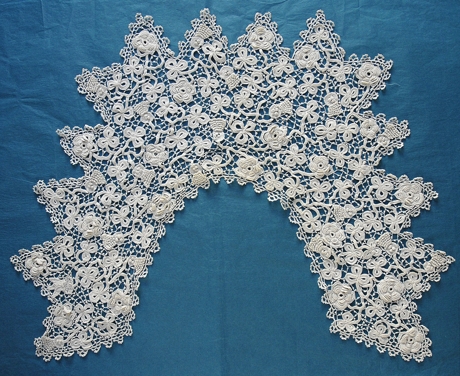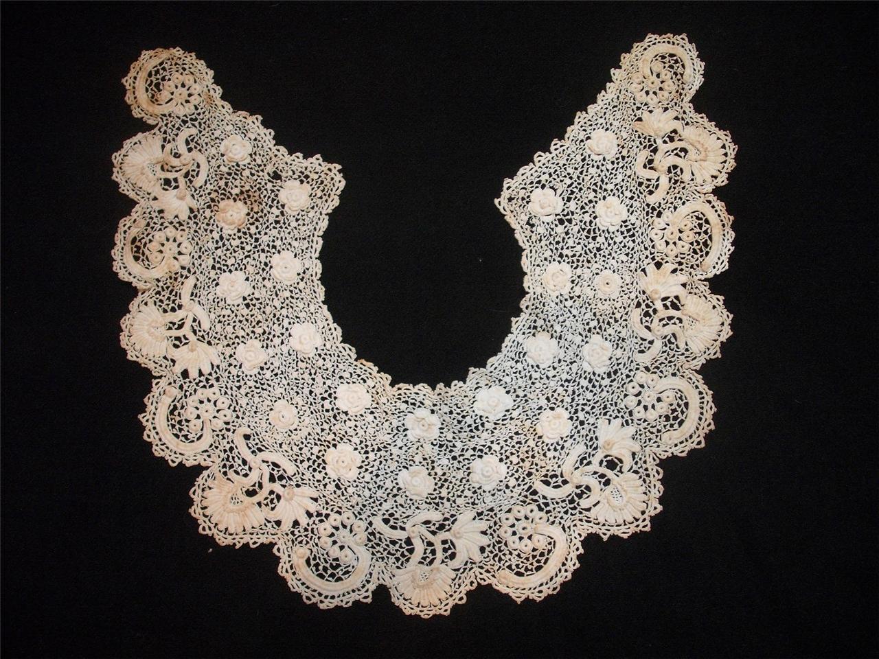 http://tinyurl.com/mln525a Antique/vintage Irish crochet lace colar – raised roses, shamrocks and thistles