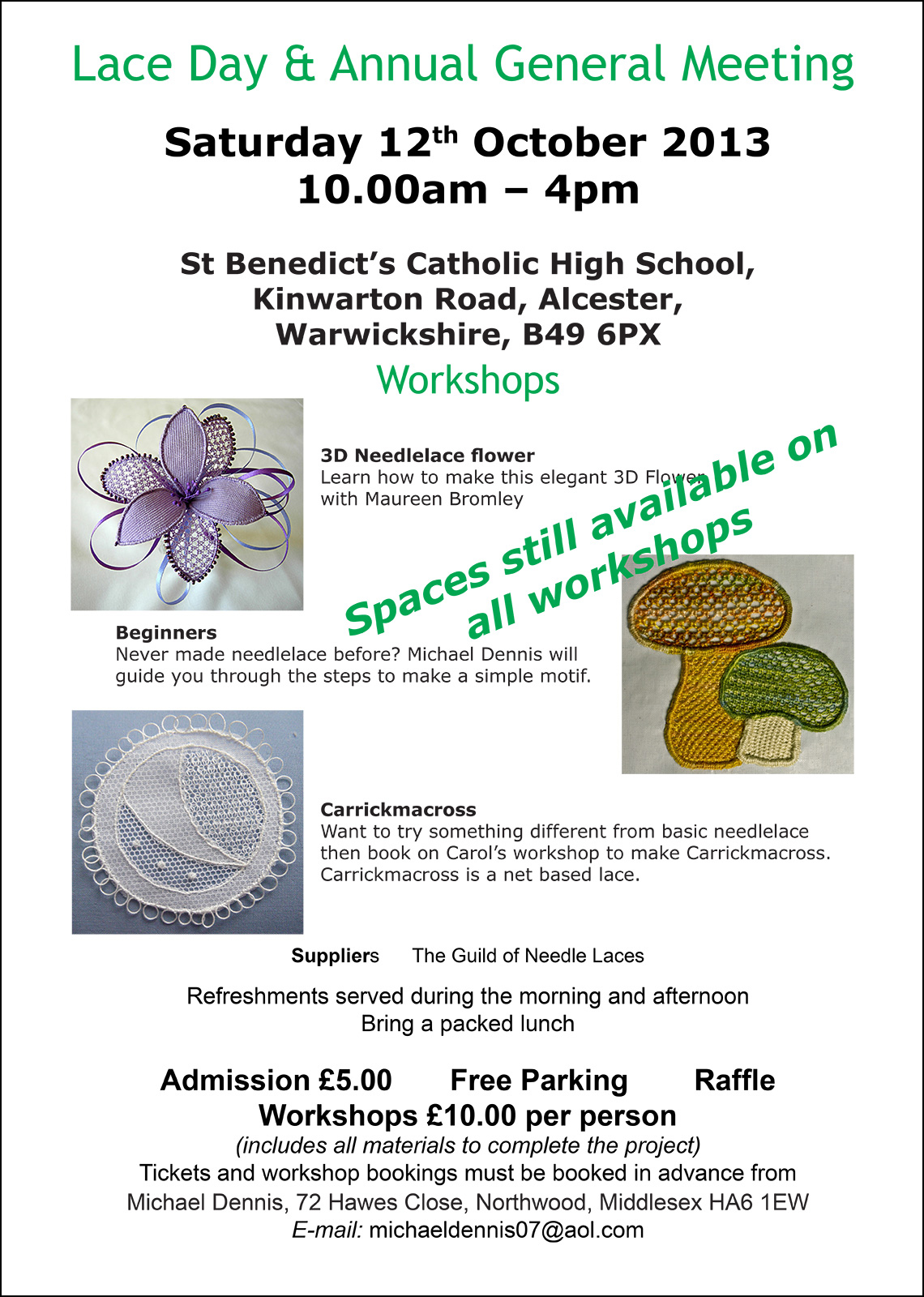 Make cheque payable to “The Guild of Needle Laces”. See application form for details.