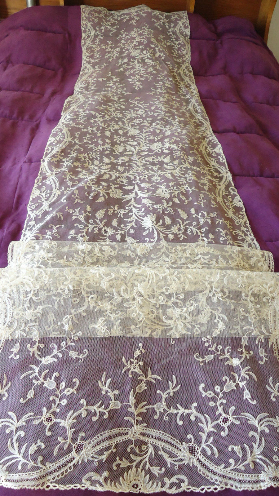 http://tinyurl.com/pjwnrv7 beautiful long embroidered net Limerick lace flounce unused near perfect