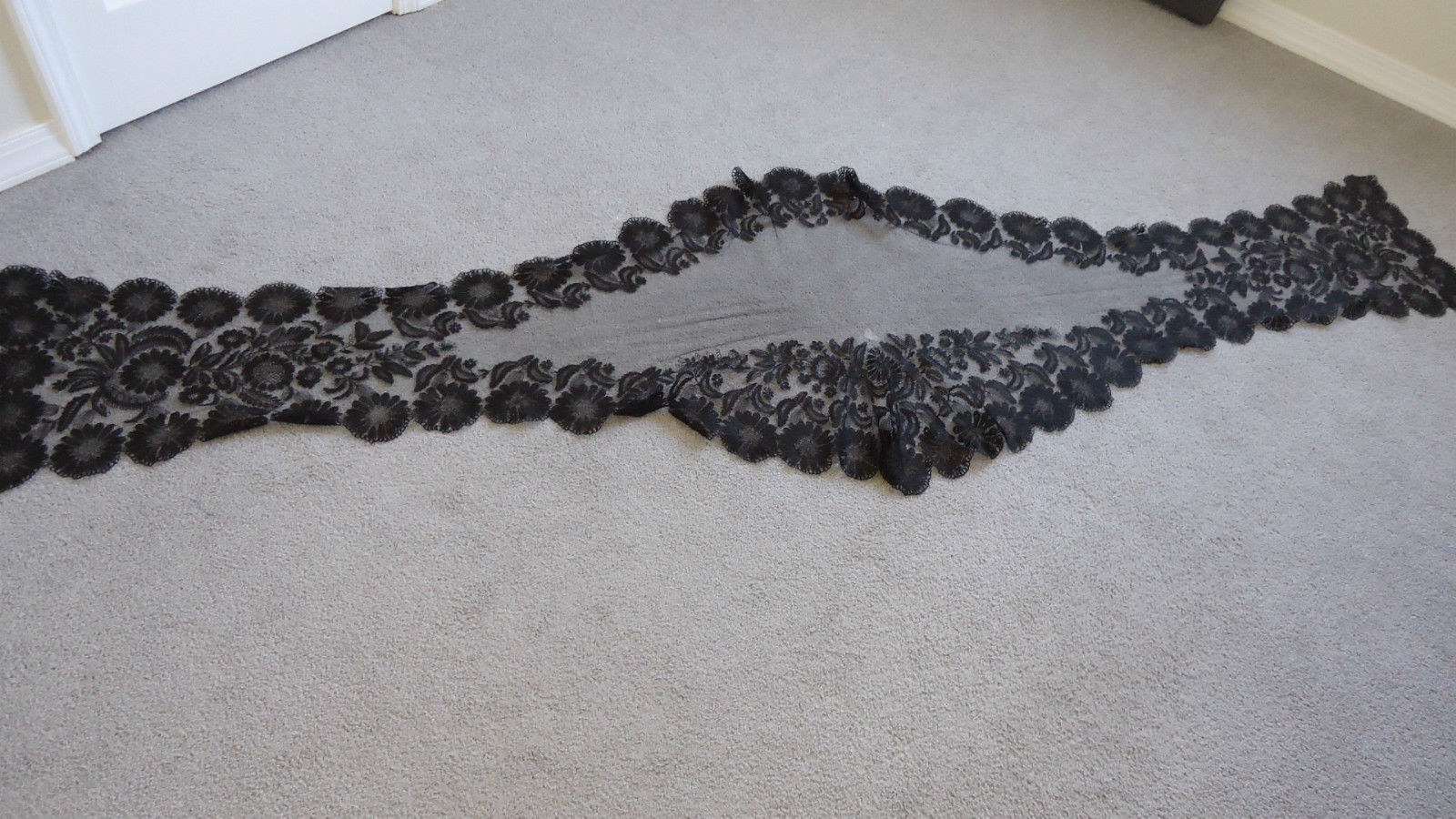 http://tinyurl.com/lyrb6ld ANTIQUE DRAMATIC FLORAL DESIGN LACE SHAWL MANTILLA SCALLOP EDGE 3 yd 8″ x 58″