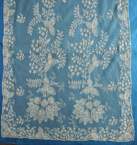 http://tinyurl.com/k8q42pf ANTIQUE 19thC HM FABULOUS LONG & WIDE BRUSSELS SHAWL W/ FINEST POINT FILLINGS