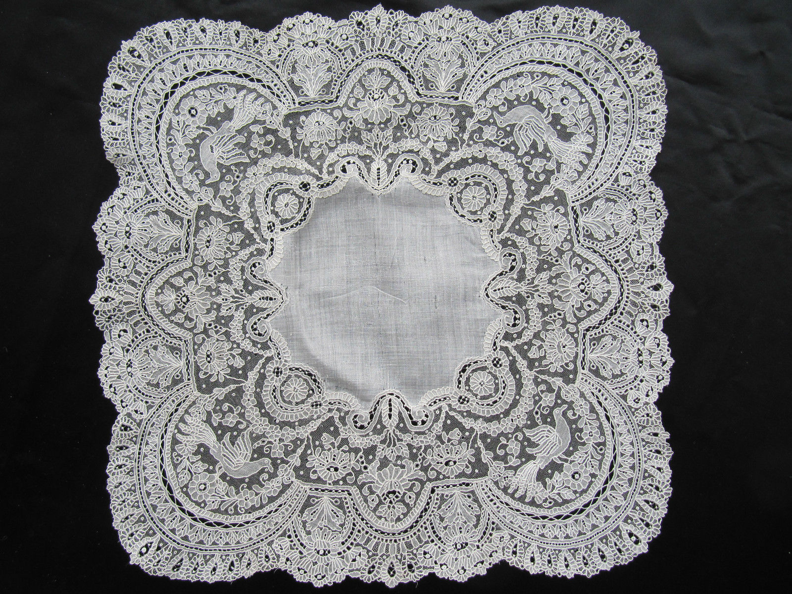 http://tinyurl.com/lqhrklx BRUSSELS POINT DE GAZE HANDKERCHIEF with BIRD MOTIFS 19th CENTURY