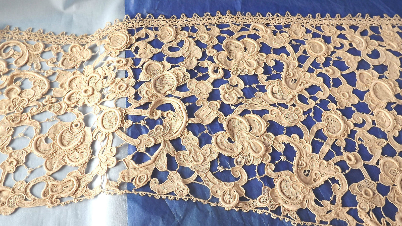 http://tinyurl.com/pcmjvh6 BRUSSELS POINT DE GAZE NEEDLE LACE with DAFFODIL and ROSE MOTIFS 3 metres