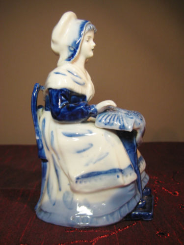 Comments: I wrote a collecting article about Delft lacemakers http://tinyurl.com/7p2p8bo. This one is a little plain – usually they have Dutch scenes painted on the skirts. It is marked with a number, 178, on the base. This is a shiny porcelain finish, not the more traditional tin-glazed earthenware. But both types are now made in the area.