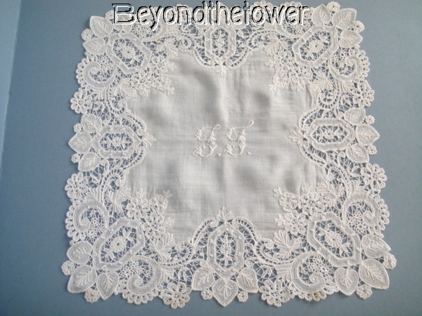 http://tinyurl.com/lmthdty A FANTASTIC HANDMADE ANTIQUE MONOGRAMMED BRUSSELS DUCHESSE-LACE HANDKERCHIEF