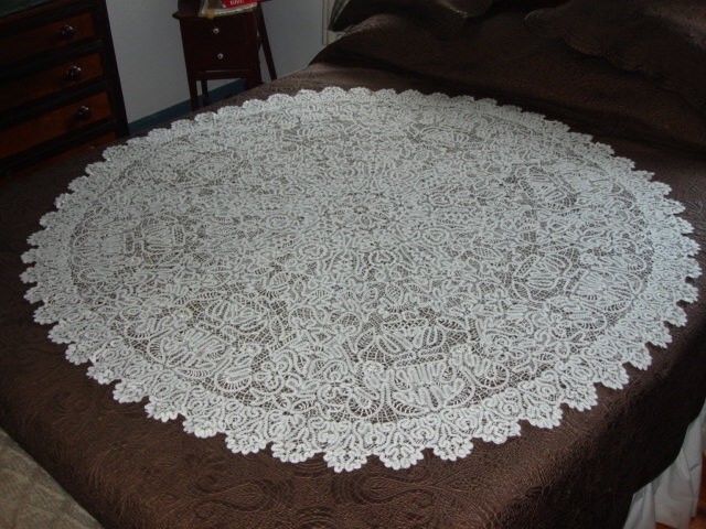 http://tinyurl.com/k7b7kob Antique Hand Made Bedfordshire Maltese Lace 58″ Round Tablecloth Shawl Headpiece