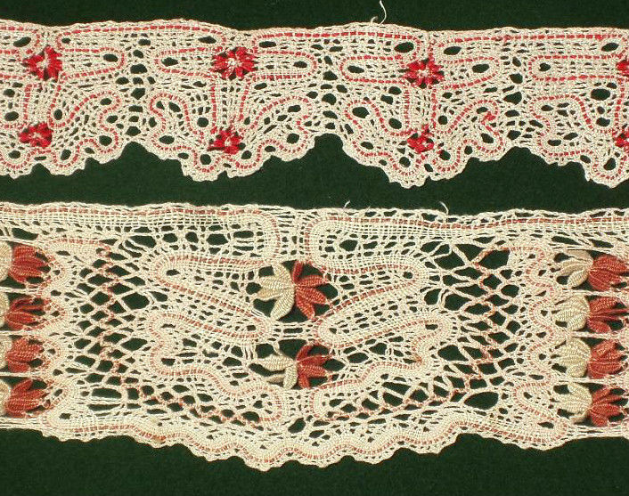 The first listing is quite interesting, since colored Eastern European laces don’t come up that often. Again, I’ll say Czech or Slovenia, although Russia is possible.