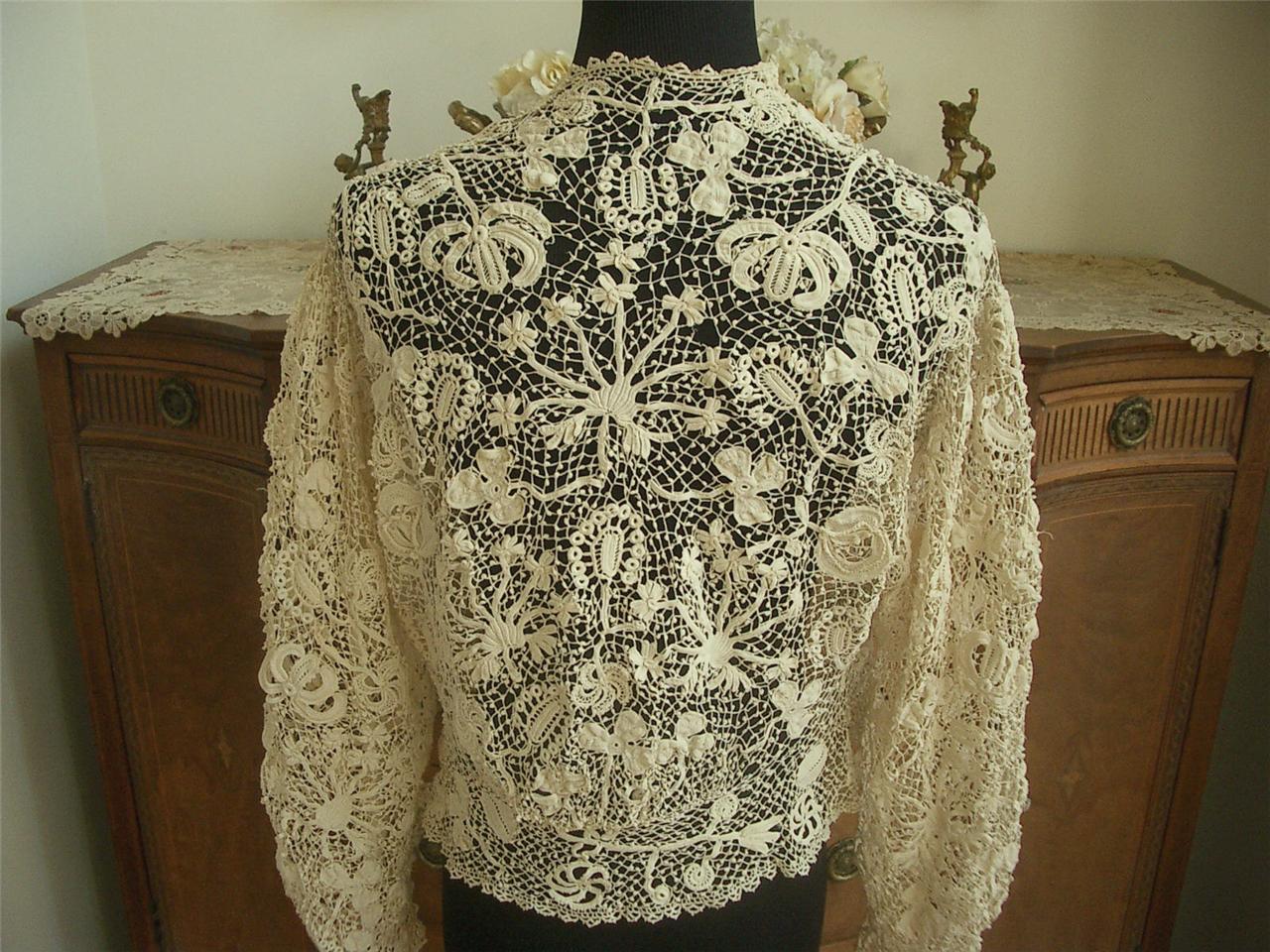 http://tinyurl.com/msz9mgy SUPERB HANDMADE Antique Vtg VICTORIAN EDWARDIAN IRISH CROCHET LACE BLOUSE BODICE