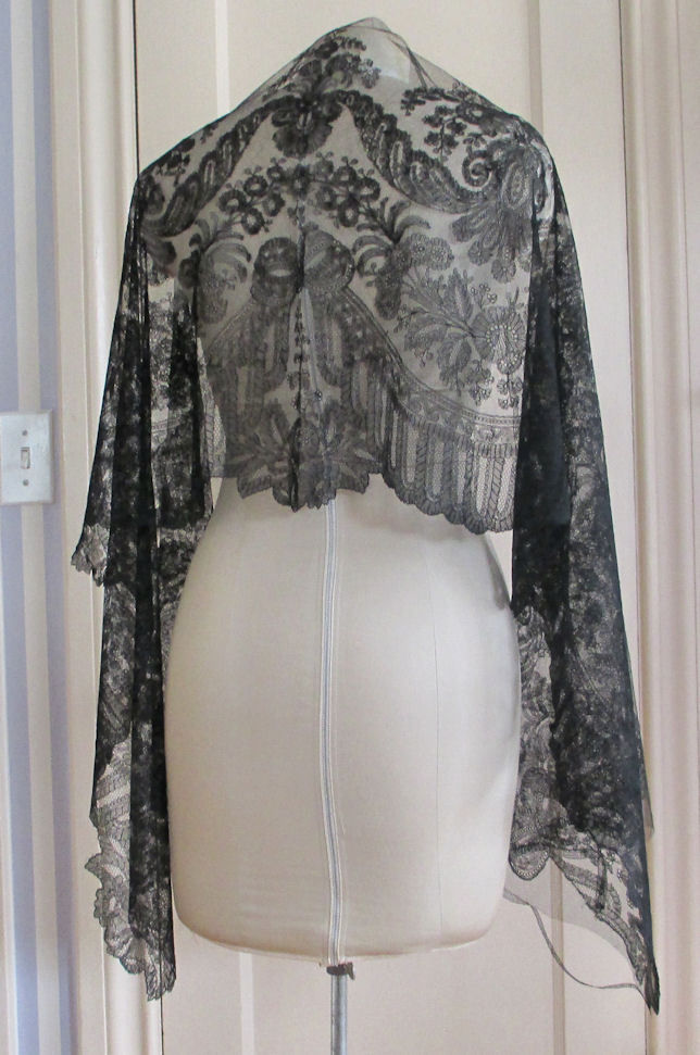 http://tinyurl.com/kc2wvkv Antique 19thC Black CHANTILLY LACE Flouce Shawl 74″ X 22″ MOURNING * Civil War