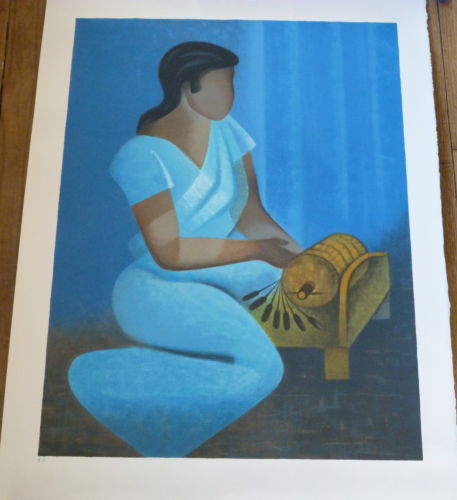 Comments: Artist’s proof. OK, she has no face, and if a French lacemaker, it’s not quite accurate, but it is a good, colorful lithograph. I’m wondering if this might be a depiction of a Sri Lanka lacemaker, from the clothing, and the costume and equipment see more typical of that region. See http://tinyurl.com/lfg4pcn. Louis Toffli was a naturalized French citizen (10/16/1907 to 2/18/1999). There’s a Wikipedia article that mentions his lithography, and also that he traveled extensively later in life.