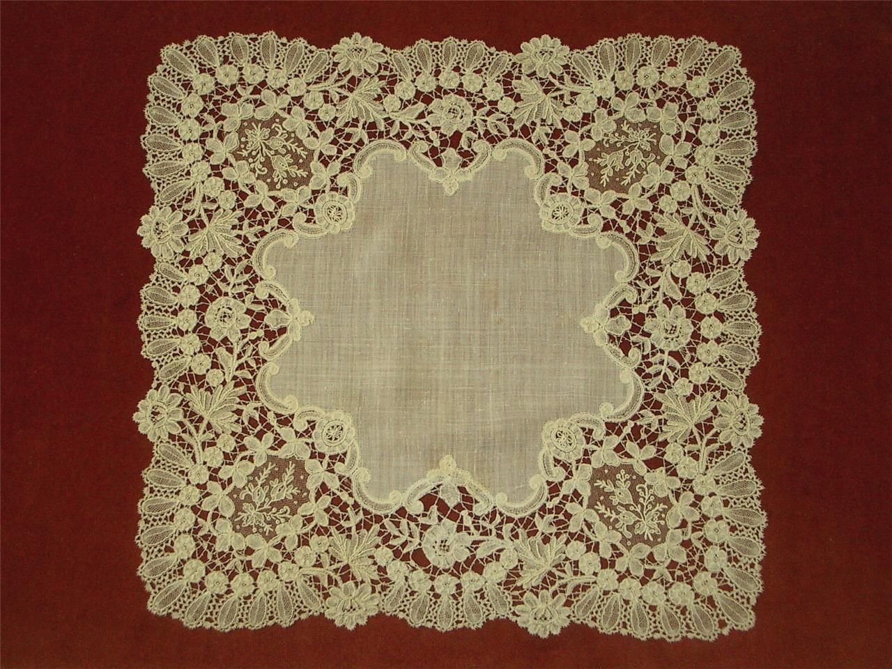 http://tinyurl.com/kyzq3sc Vintage Lace (~1880): Brussels bobbinlace Handkerchief , 16.1″ x 16.6″