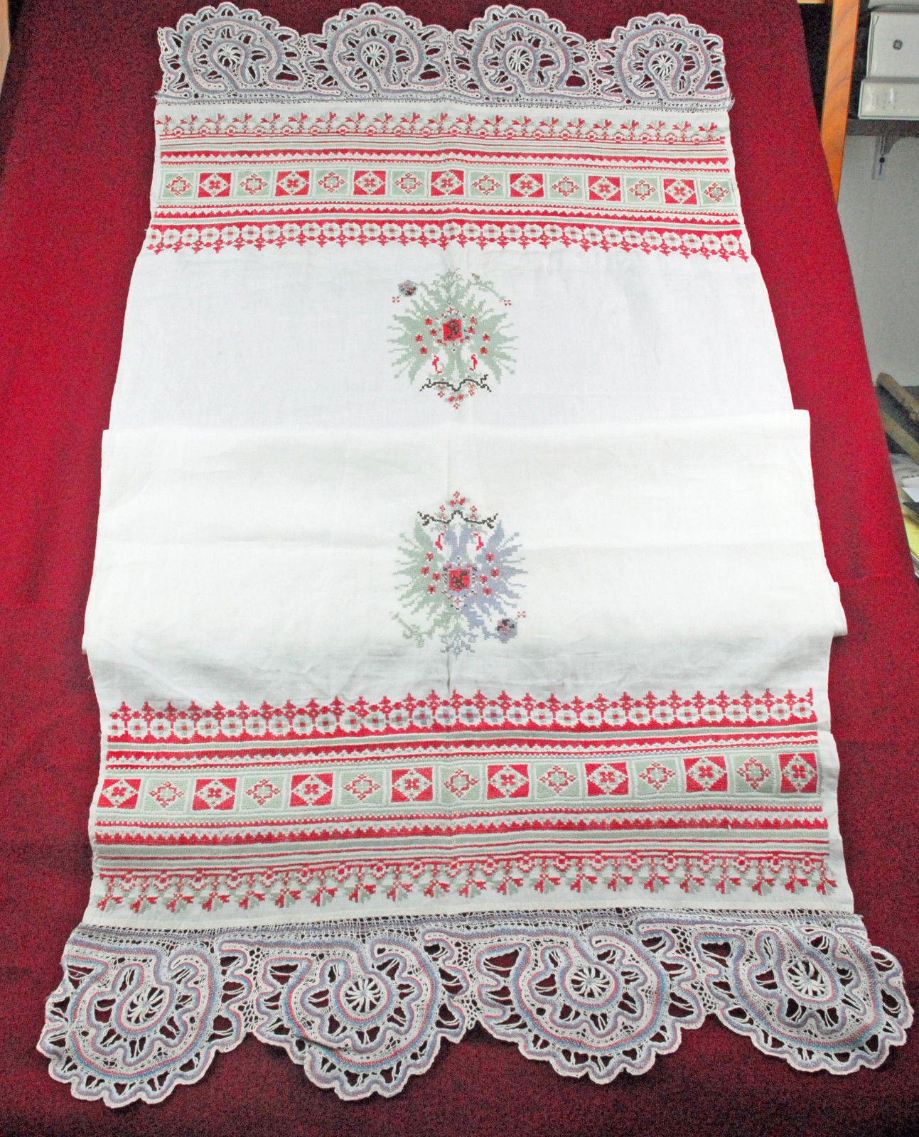 http://tinyurl.com/kc2sksu ANTIQUE VINTAGE HANDMADE RUSSIAN TEXTILE WITH COAT OF ARMS, LACE, EMBROIDERY