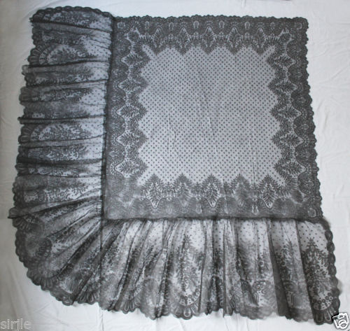 http://tinyurl.com/mg5w29m Grand Châle Carré Dentelle Chantilly + Volant Identique Fichu Arlésienne 19ème