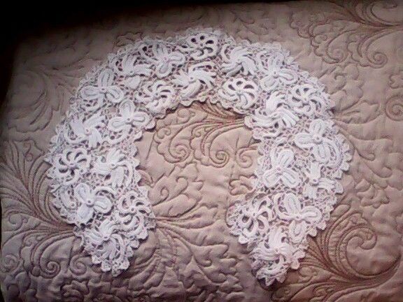 http://tinyurl.com/myda5h8 Vintage Handmade Bucks Point Buckinghamshire Lace Collar Trim Mayflower Filling