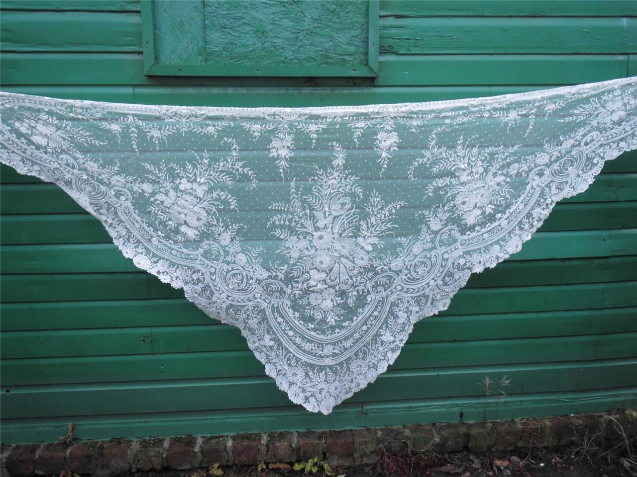 http://tinyurl.com/lqp2dh4 Grand Châle Carré Fichu Arlésienne Dentelle Tulle Brodé 19èm Limerick lace Shawl