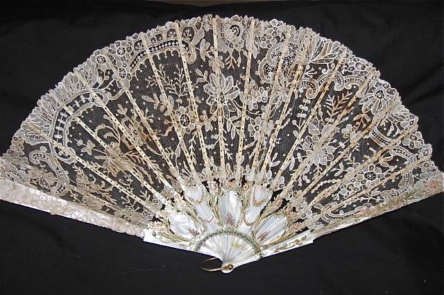 http://tinyurl.com/mbh2fzn Beautiful Antique Handmade Lace and M.O.P. Fan-Fine Sticks