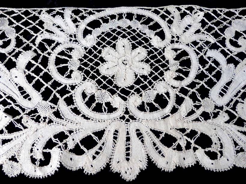 Comments: A segment of a border of Bruges Bloemwerk. Double picoted brides, and a good bold presence. Interesting provenance. Just wish there were more. Seller has several other pieces from the same ‘estate’.