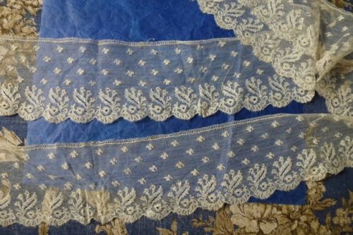 Comments: A Mechlin border, very light and delicate. Late 18th, early 19th c, although not really 1st Empire. maybe a little later. Sort of a curved design with sprigs used as esprits in the ground. If you are having trouble seeing this listing, google Ebay France and copy the title into the search space.