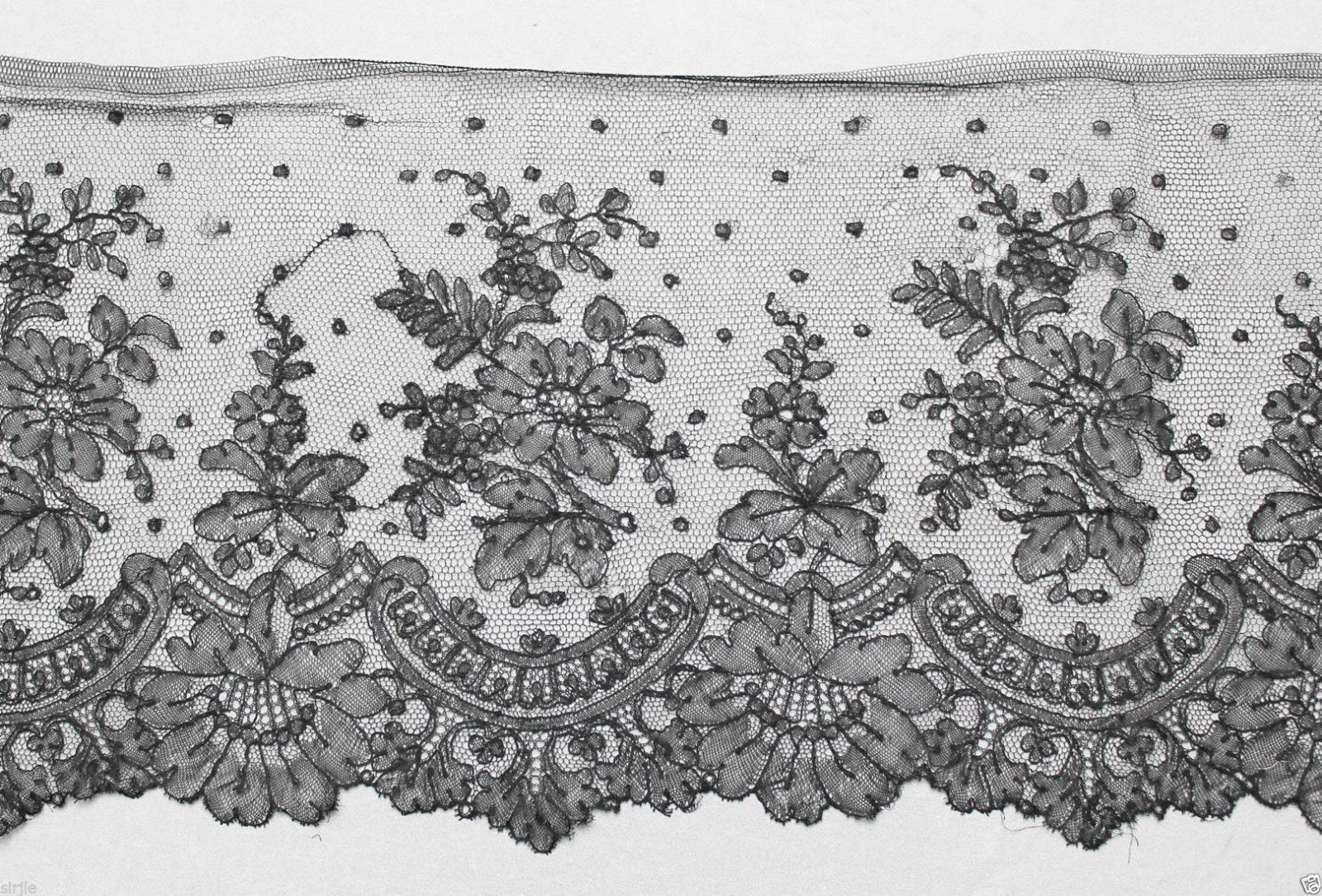 http://tinyurl.com/lrmsw46 dentelle Chantilly aux fuseaux 5,90m x 22cm Silk Hand Made Bobbin Lace 19thc