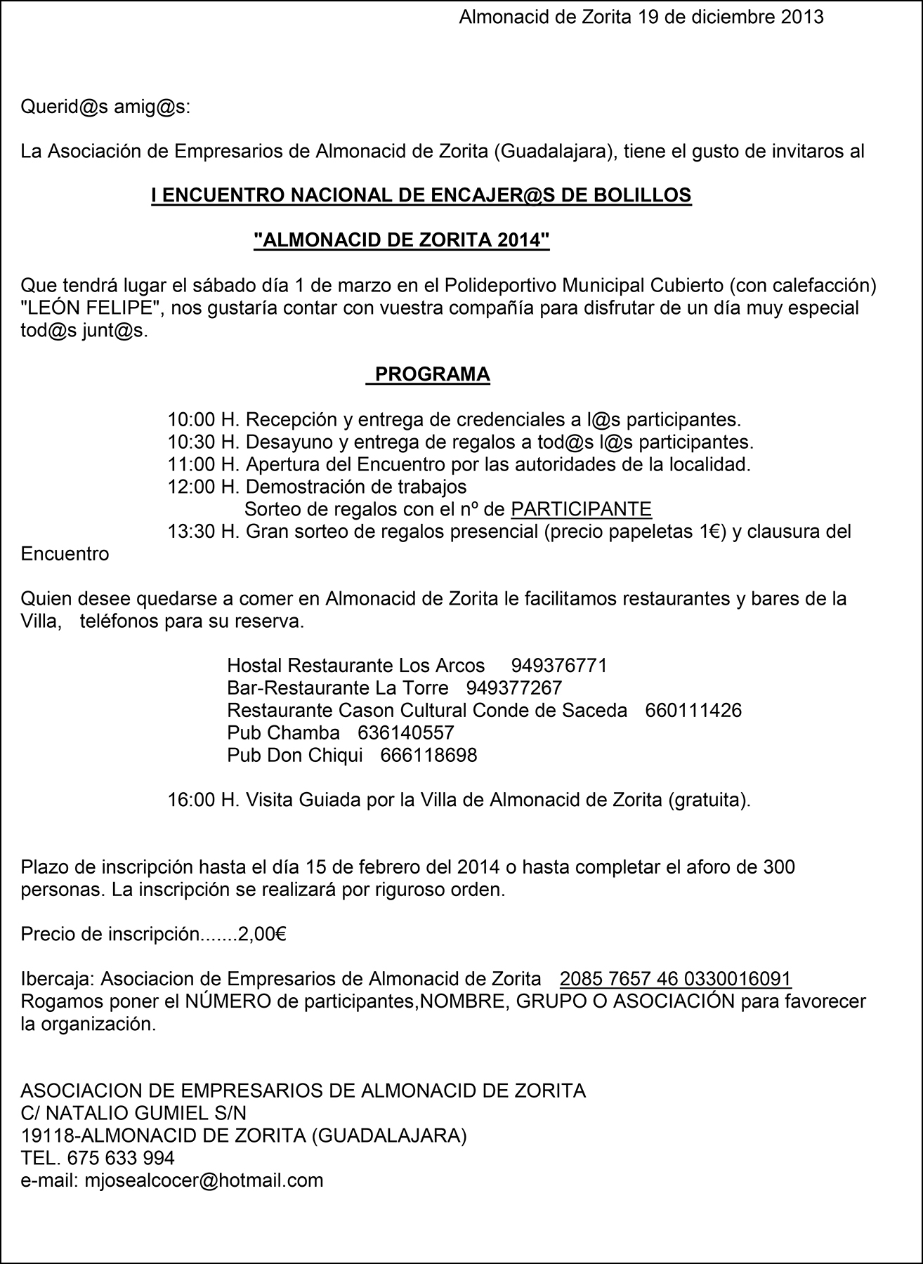 Sponsor: La Asociaciόn de Empresarios de Almonacid de Zorita