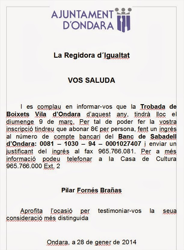This is part of the III Semana de la Igualdad in Ondara, which runs from March 8th to 16th, and is coordinated with International Women’s day (March 8th).