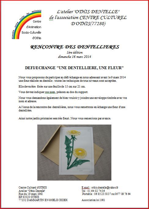 Sponsors: L’atelier “Othis Dentelle” de l’Association “Centre d’Animation Socio-Culturelle” d’Othis