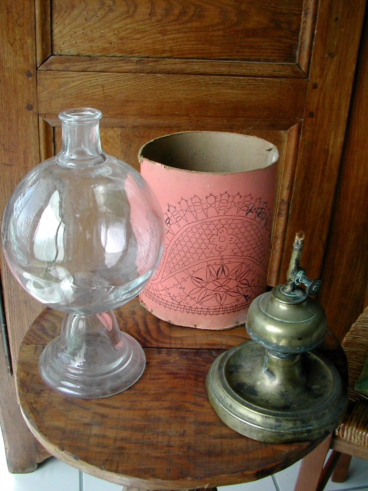 http://tinyurl.com/oje62o3 Rare Boule de Veille et Lampe à Huile du XIX° Eclairage de Dentelle aux Fuseaux