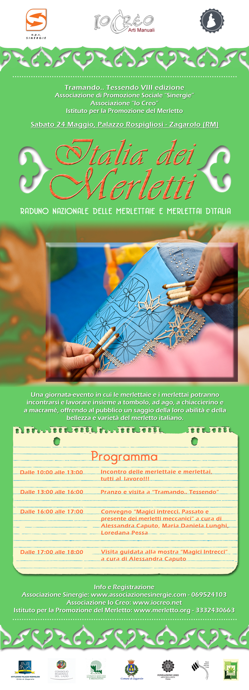 The entire event lasts from May 23-25, 2014, and includes events related to many textile arts, for professionals and amateurs. The one that concerns lacemakers the most is the Incontro on the 24th, and the Machine lace exhibition.