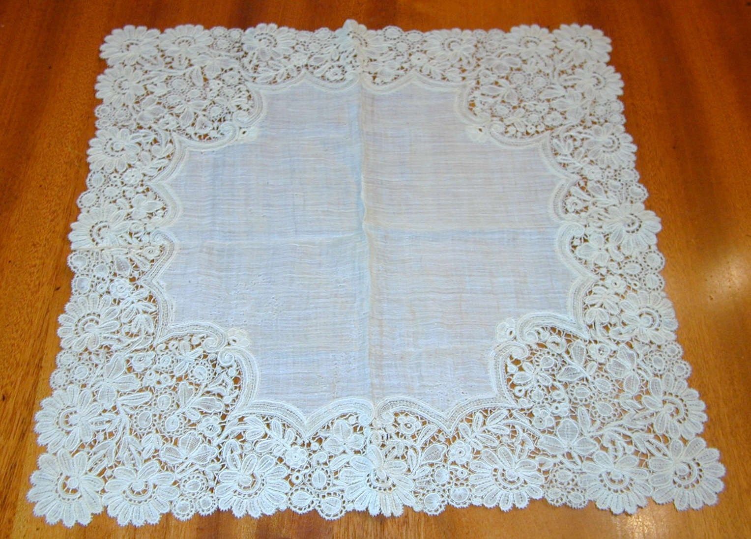 http://tinyurl.com/mzejacb Antique 19thC Handmade Wedding Brussels LACE Handkerchief
