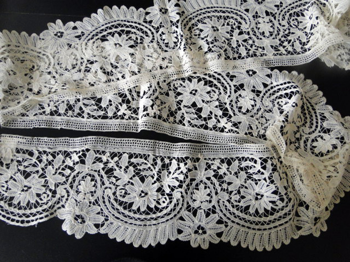 Modifications: Cut one end, can’t see the other end. (On applications I don’t mention the engrelure, since this was always added to this type of lace).