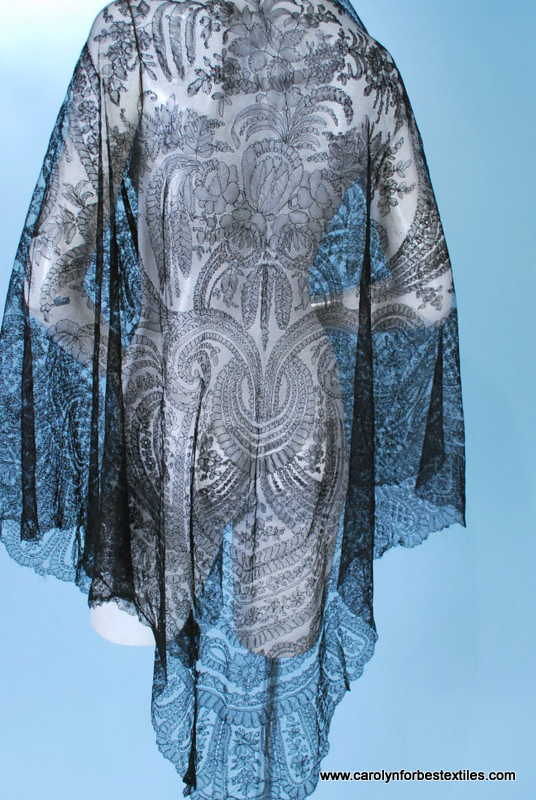 http://tinyurl.com/qfe2khc 1860 ELEGANT GOSSAMER FRENCH HAND CHANTILLY SHAWL