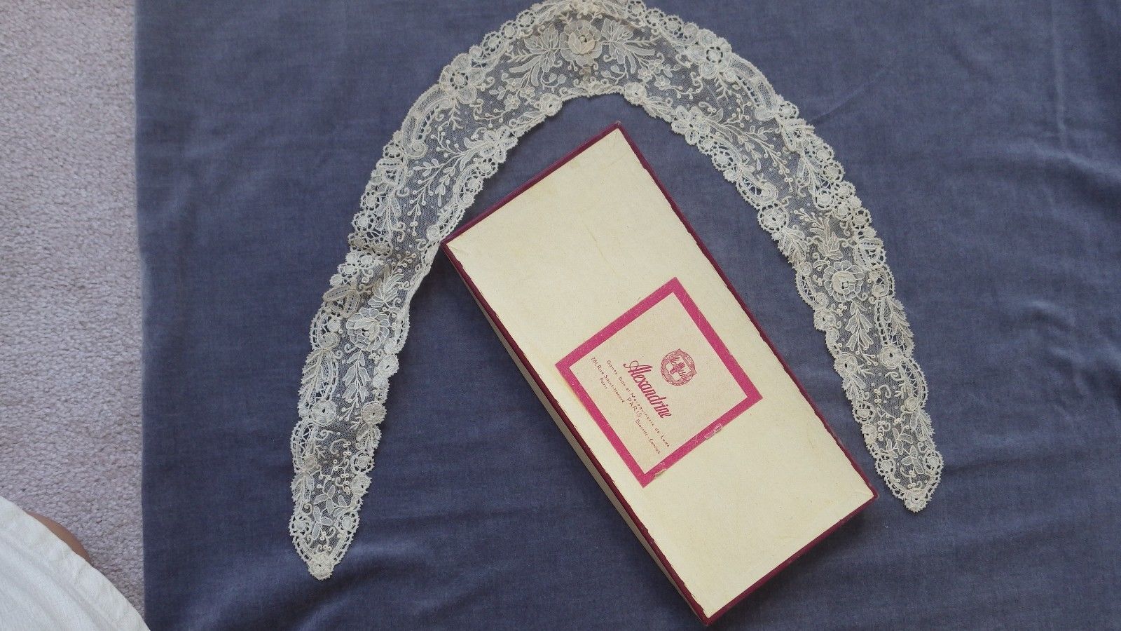 http://tinyurl.com/ms6b27u Unused POINT DE GAZE Lace Collar, Narrow & Long, in Alexandrine Paris Box